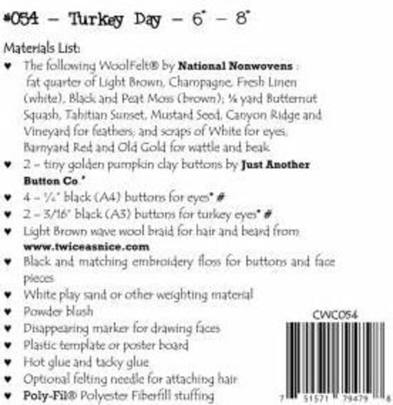 Vintage Sewing Pattern 10 Fabric Thanksgiving Turkey Etsy